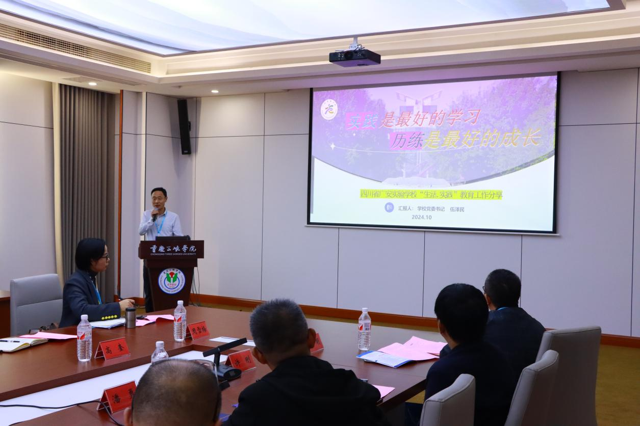 “生活·实践”教育共同体川渝中心秘书长王黎汇报了“生活·实践”教育共同体川渝中心工作情况。川渝中心高度整合川渝两地优质教育资源,深度开展“三个寻找”活动,并创办《“生活·实践”教育研究》国际期刊,为实验校发展提供了优质平台和资源。