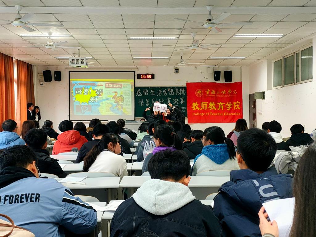 在本次比赛中,同学们积极参与展现了当代老员工多才多艺的一面,参赛选手结合PPT和现场表演,在舞台上活泼演绎各个主题情景剧,不仅立足老员工实际生活,抒发真情实感,传播心理健康知识,更激发了同学们对身边学习生活的体验,对自己生活进行反思,更深刻地认识自我,懂得感悟生活。经过了8个组的真情演绎,评委公正评分,得出一等奖:春日部防卫队。二等奖:芋泥啵啵不要啵啵队、我们都是重庆人队、美少女战士队。三等奖:秀儿秀不起队、心理救援队。优胜奖:啊你说得都对队、玛卡巴卡队。比赛圆满结束。