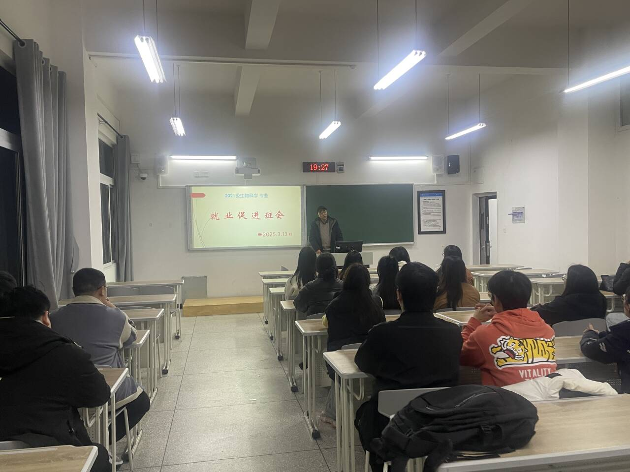 本次会议从个人、家庭、社会、就业观、家长等多个角度为员工们深入剖析就业形势,提供实用的就业建议。首先从个人角度出发,杨老师强调员工已经成年,不能做啃老族,鼓励员工们充分认识自身优势与不足,挖掘个人潜力,找到真正热爱且适合自己的工作;接着从家庭角度谈到家庭在就业过程中的支持作用,鼓励员工与家人积极沟通,获取家人的理解与帮助,共同规划职业发展道路。在社会角度的阐述中,杨老师分析了当前社会对生物科学(师范类)专业人才的需求趋势,引导员工关注社会发展动态,把握就业机会,抓住机遇。接着在谈及就业观中,老师提醒员工们要摒弃传统的就业偏见,不要盲目追求热门职业,而是要根据自身实际情况,选择最适合自己的岗位。同时,要保持积极的就业心态,勇于面对就业过程中的挑战与困难。最后,老师从家长角度出发,告诉同学们路很长,需要持续学习,先就业,再择业。