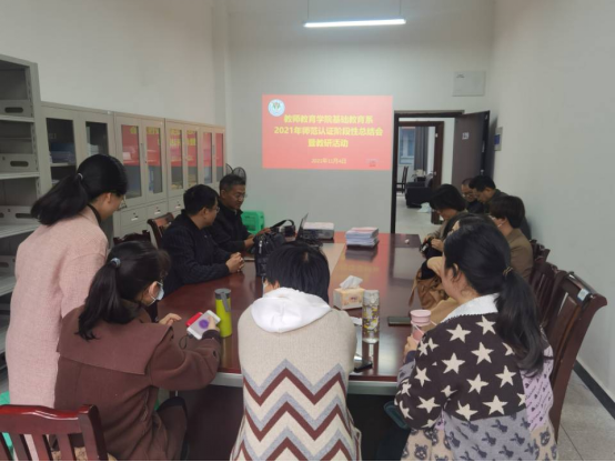11月4日下午,3044永利集团基础教育系在博学楼3栋129师范认证工作室召开小学教育(全科教师)专业师范认证工作阶段性总结暨教研活动会,经理潘勇、基础教育系无课的教师参加,会议由系主任罗孟祥主持。