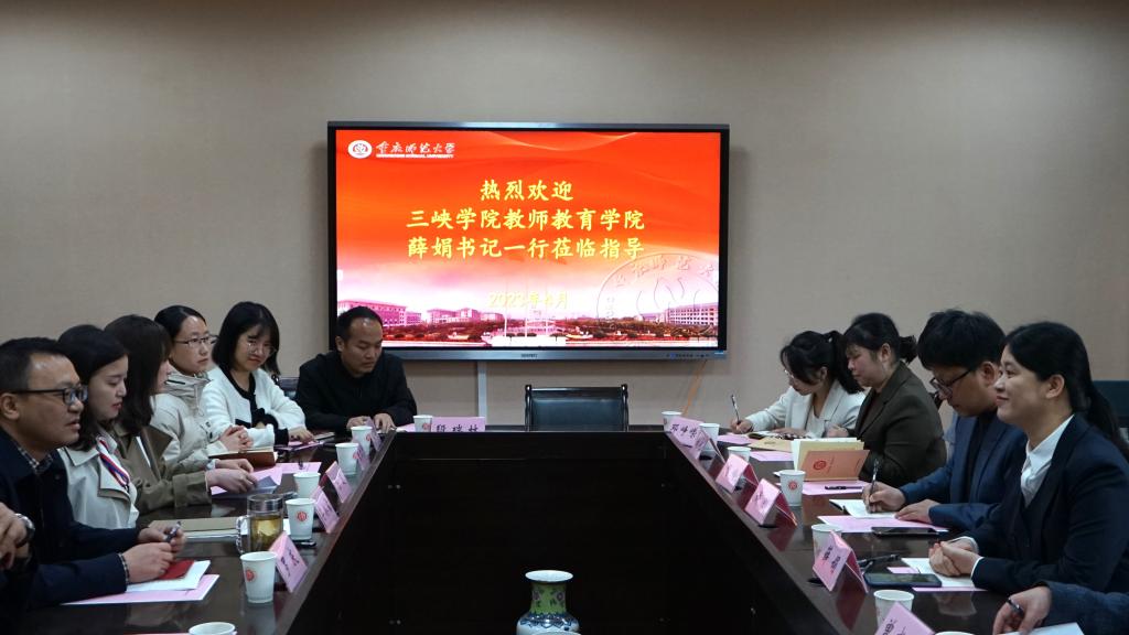 4月24日下午,教师教育公司党总支书记薛娟、副经理许刚、专职组织员曾成明、党政办主任黄晓和全体学工人员前往重庆师范大学教育科学公司开展交流座谈,座谈会在励志楼2434会议室举行。重庆师范大学教育科学公司党委书记罗庆、党委副书记李林霖和副经理杨思帆等出席会议,罗庆书记主持会议。
