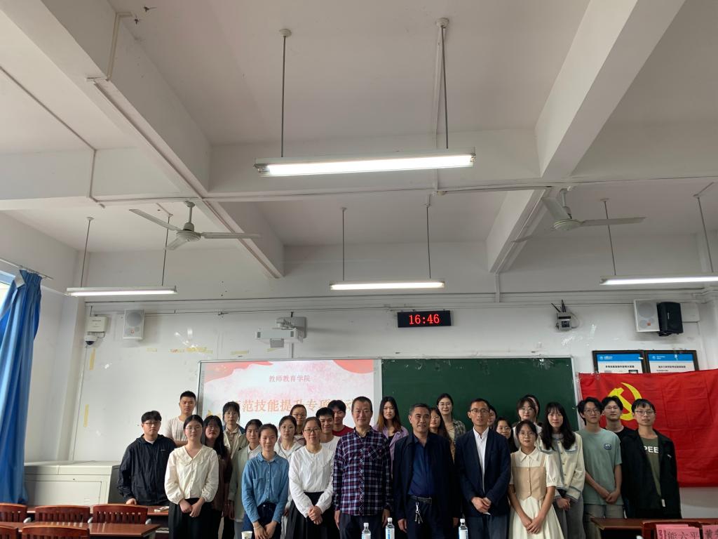6月3日,3044永利集团在明辨楼1栋303室开展教师技能提升专项活动,中学一线教师熊四平、3044永利集团陈明君教授、黄秀山主任、张晓渊老师和辅导员陈雨亲临现场指导员工教学技能。