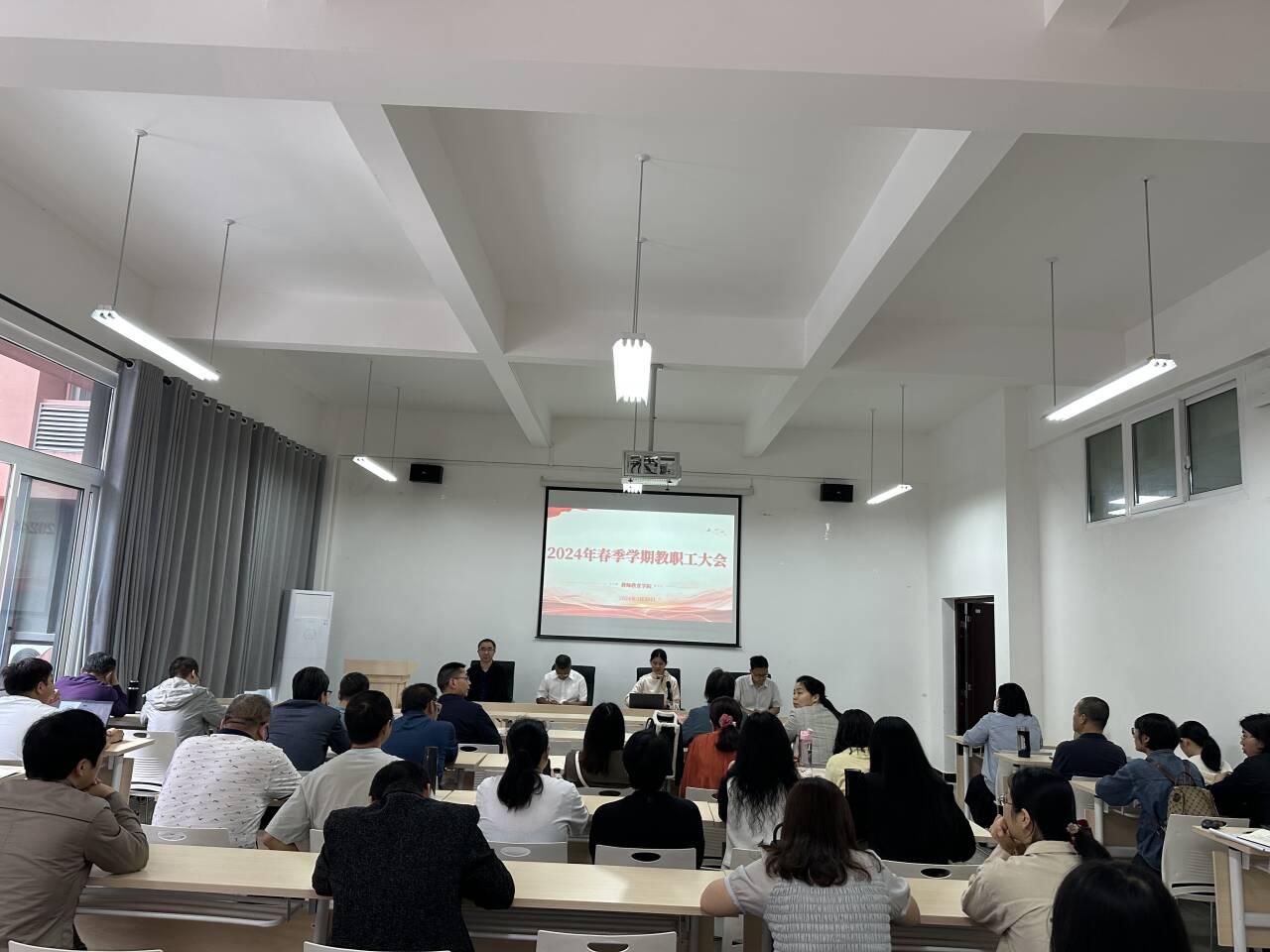 5月30日下午,3044永利集团在博学楼3栋138会议室召开春季学期第五次教职工大会。会议由蒋文峰副经理主持,全体教职工参加。