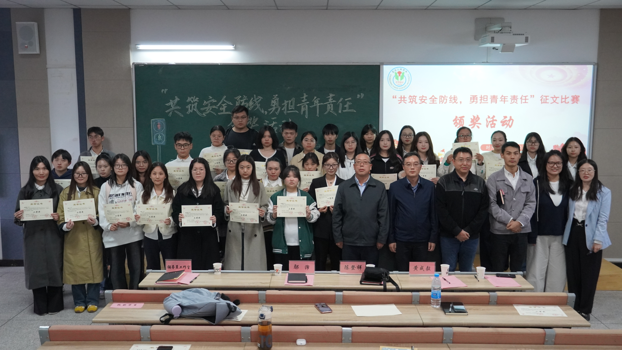 颁奖仪式上,陈登祥处长宣读获奖名单,现场气氛热烈,掌声不断。获奖同学笑容满面,荣誉证书既肯定了他们的创作,也寄托了对青年勇担责任的期望。