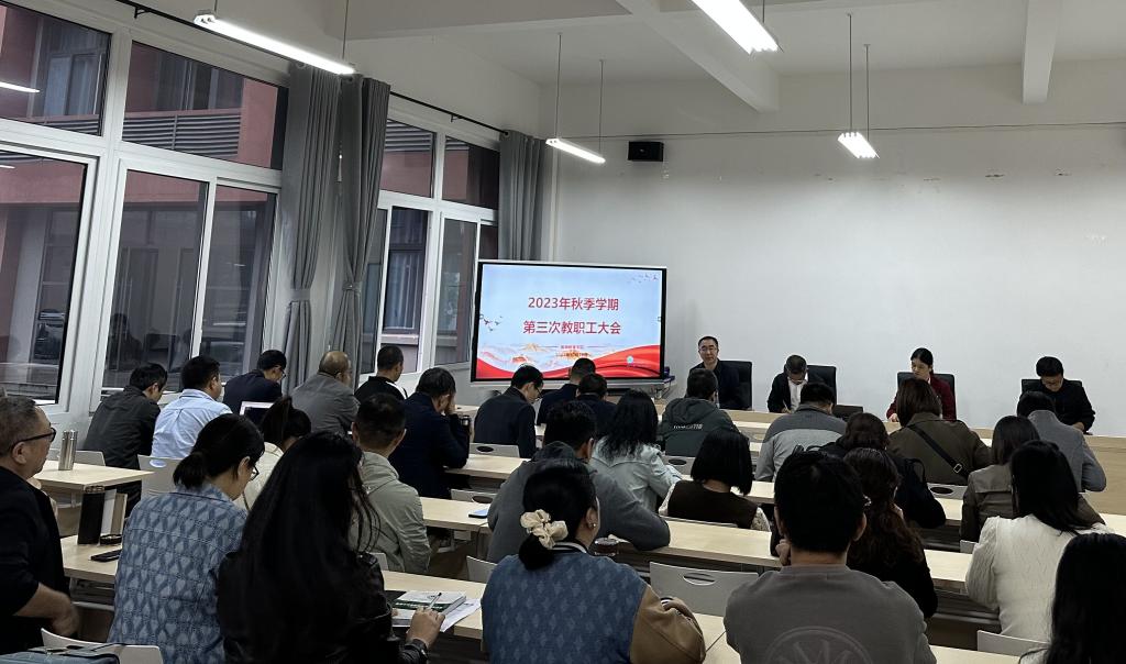 10月19日下午14点30分,在博学楼3栋138会议室召开了2023年秋季学期第三次教职工大会,会议由副经理蒋文峰主持,全体教职工参加。