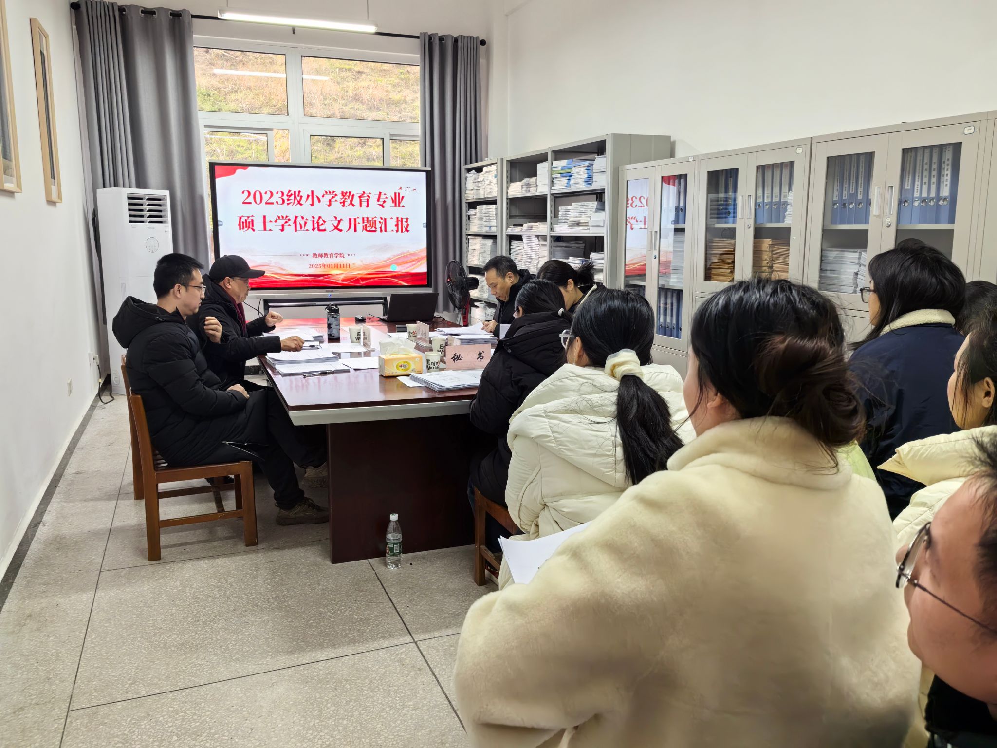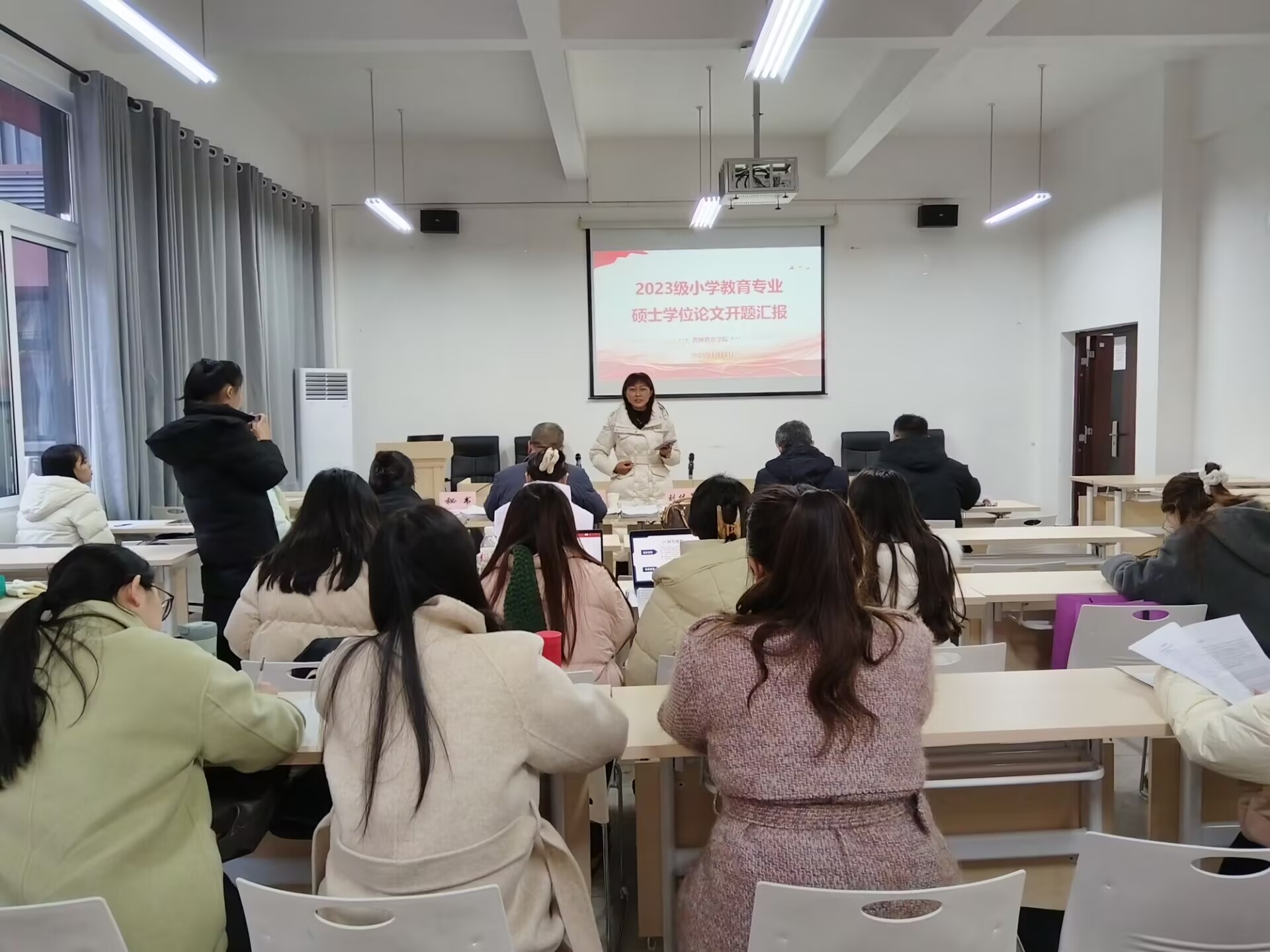 2025年1月11日上午,3044永利集团在博学楼会议室举行了2023级小学教育和学科教学(物理)专业硕士研究生学位论文开题报告会。