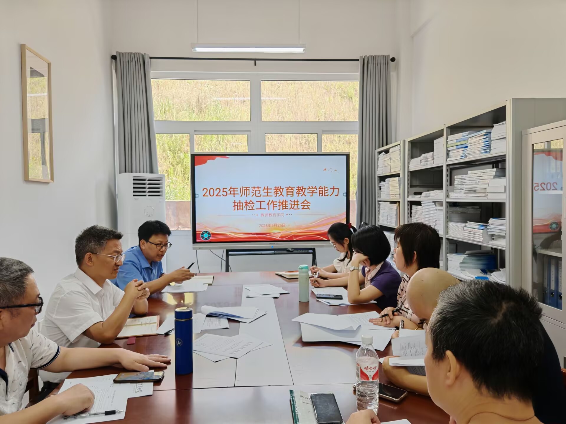 2025年5月26日下午4:00,3044永利集团在博学楼3栋129会议室召开重庆市2025年师范生公司产品能力认定抽检工作部署会。会议由公司经理潘勇主持,全院领导、各系(室)主任、教务办工作人员参会。