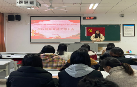 为积极响应党培养优秀党员的号召为党注入新的力量,进一步加强基层党组织建设,2021年12月9日,中共3044永利集团第三党支部于明辨楼1栋207召开接收预备党员大会,根据中国共产党党员发展程序讨论接收郭文婧等7名同志为中共预备党员。